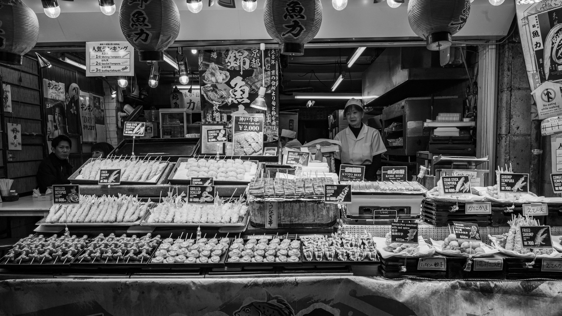 Takoyaki servers, Dotonbori, Osaka, Japan